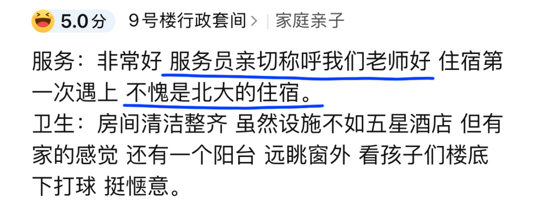 “就连办事东说念主员都东说念主均带着股书卷气,前台能流利先容出周遭的名胜职业和校园历史。以致帮我省去了一天两三百元的开脱行陪玩陶冶用度。”