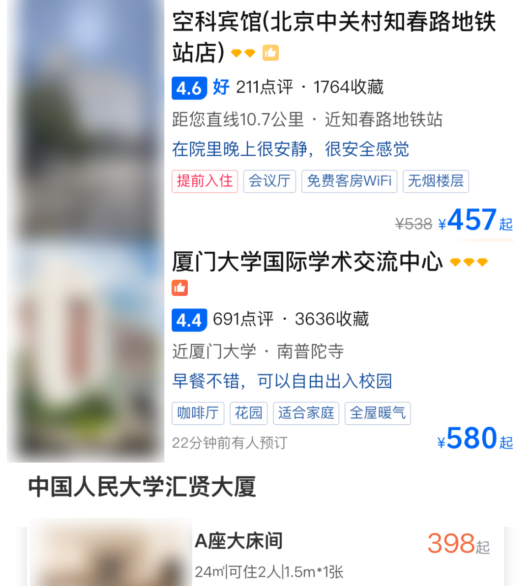 “有部分学术旅舍就算挂在出行app上,也终年败露暂无房源;有的干脆只可靠最传统的款式才智预定。比如清华大学的‘甲所’,据说有校内开具的‘先容信’才智入住。”