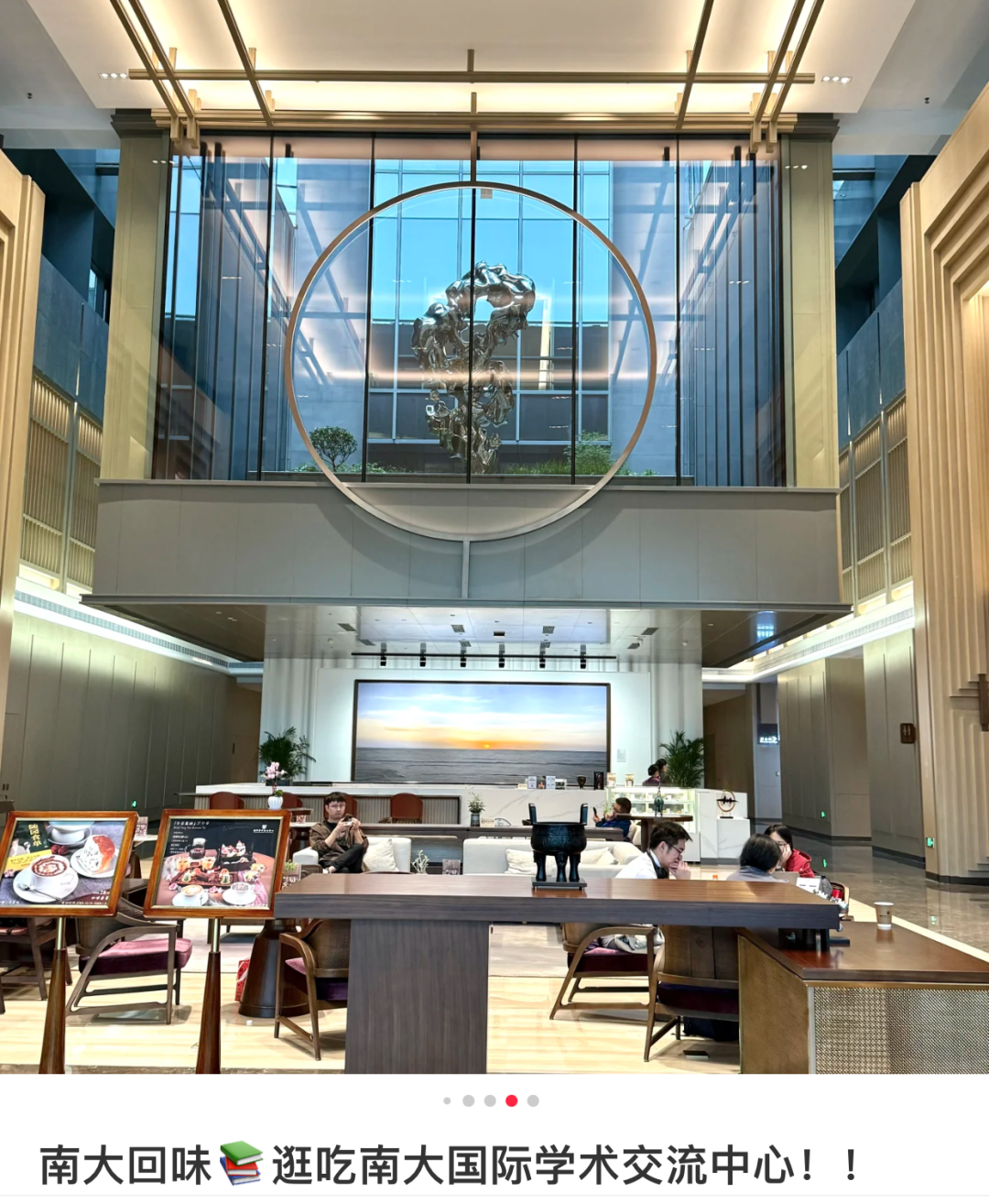 “南京大学里的外洋疏通中心,大堂里摆放的太湖石和苏绣作品,都出自本校行家之手;朝北的房型,窗外等于太湖景区。”